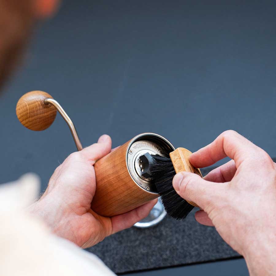 - Warum brauche ich eine spezielle Bürste? Die weichen Naturborsten sind so gewählt, dass sie Kaffeepartikel effektiv entfernen, ohne die scharfen Kanten deines Mahlwerks zu beschädigen. Zudem ist die Form ideal, um auch in schwer zugängliche Ecken zu gelangen