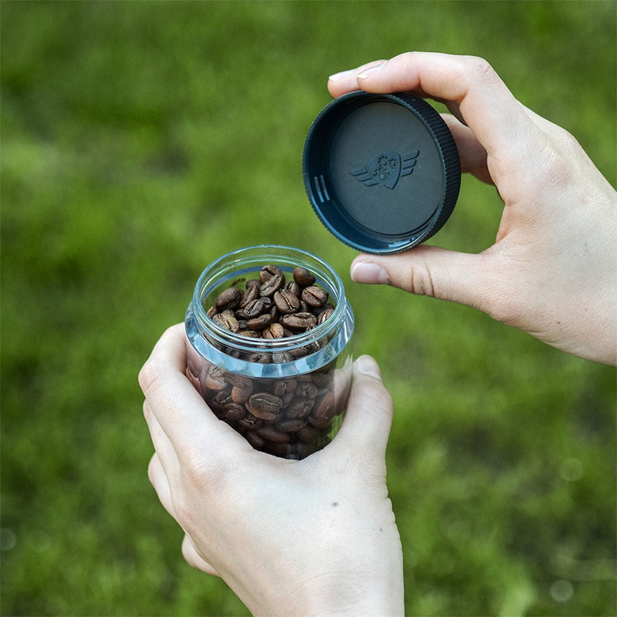 - Einsatz: Bohnen/Grind lagern, als Catch Cup verwendbar, auch als Becher nutzbar
