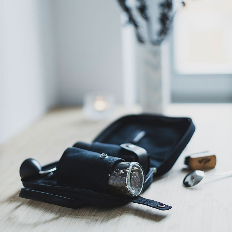 - Warum eine spezielle Tasche statt eines normalen Beutels? Ein normaler Beutel schützt nicht vor Stößen. Die passgenaue Polsterung verhindert, dass die Mühle beschädigt wird oder im Gepäck herumfliegt