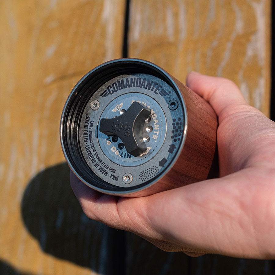 Die C40 MK4 in „Virginia Walnut" verkörpert zeitlose Eleganz. Das edle Furnier aus amerikanischem Walnussholz besticht durch seine charakteristische, dunkle Maserung und die warmen Brauntöne, die dem Holz seine unverwechselbare Noblesse verleihen. Virginia Walnut gilt als eines der edelsten Hölzer für Möbel und Instrumente – und macht diese C40 zu einem wahren Schmuckstück. Unter dem edlen Holzfurnier arbeitet das bewährte Nitro Blade®-Mahlwerk aus hochlegiertem, stickstoffreichem Edelstahl. Die MK4-Generation bringt das überarbeitete Polymer-Engine-Frame mit, das Verklemmen reduziert und das Handling verbessert. Made in Germany.