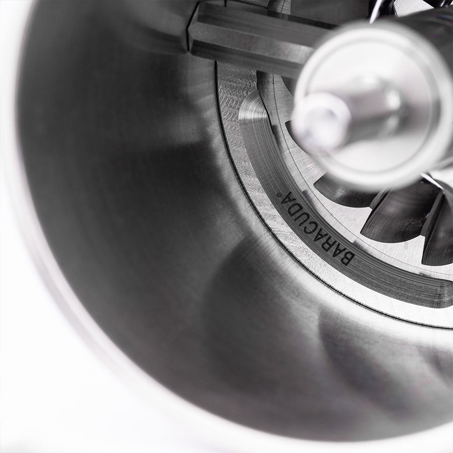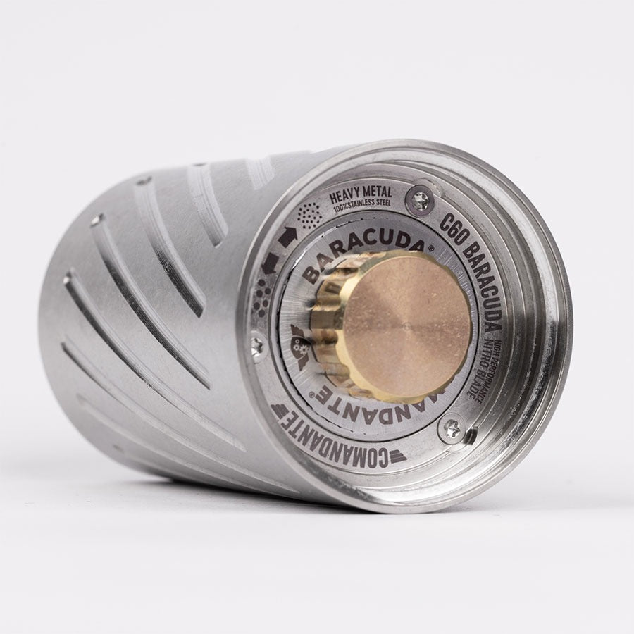 Es gibt Werkzeuge, und es gibt Statements. Die Comandante C60 Baracuda ist ein Statement. Sie ist das Ergebnis jahrelanger Forschung mit dem Ziel, die leistungsstärkste Handmühle der Welt zu bauen. Ihr Körper ist nicht zusammengesetzt, sondern aus einem einzigen Block Edelstahl gefräst – eine Unibody-Konstruktion für nie dagewesene Stabilität. Im Inneren arbeitet das massive Baracuda®-Mahlwerk, eine Weiterentwicklung des Nitro Blade®, optimiert für mehr Geschwindigkeit und außergewöhnliche Mahlgut-Homogenität. Das „Stone Washed"-Finish verleiht dem Stahl eine einzigartige, matte Textur. Made in Germany.