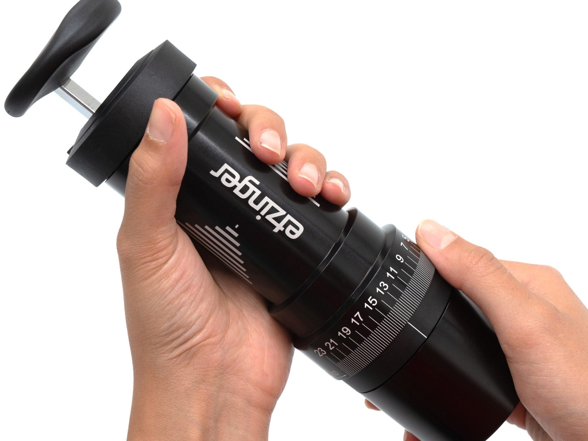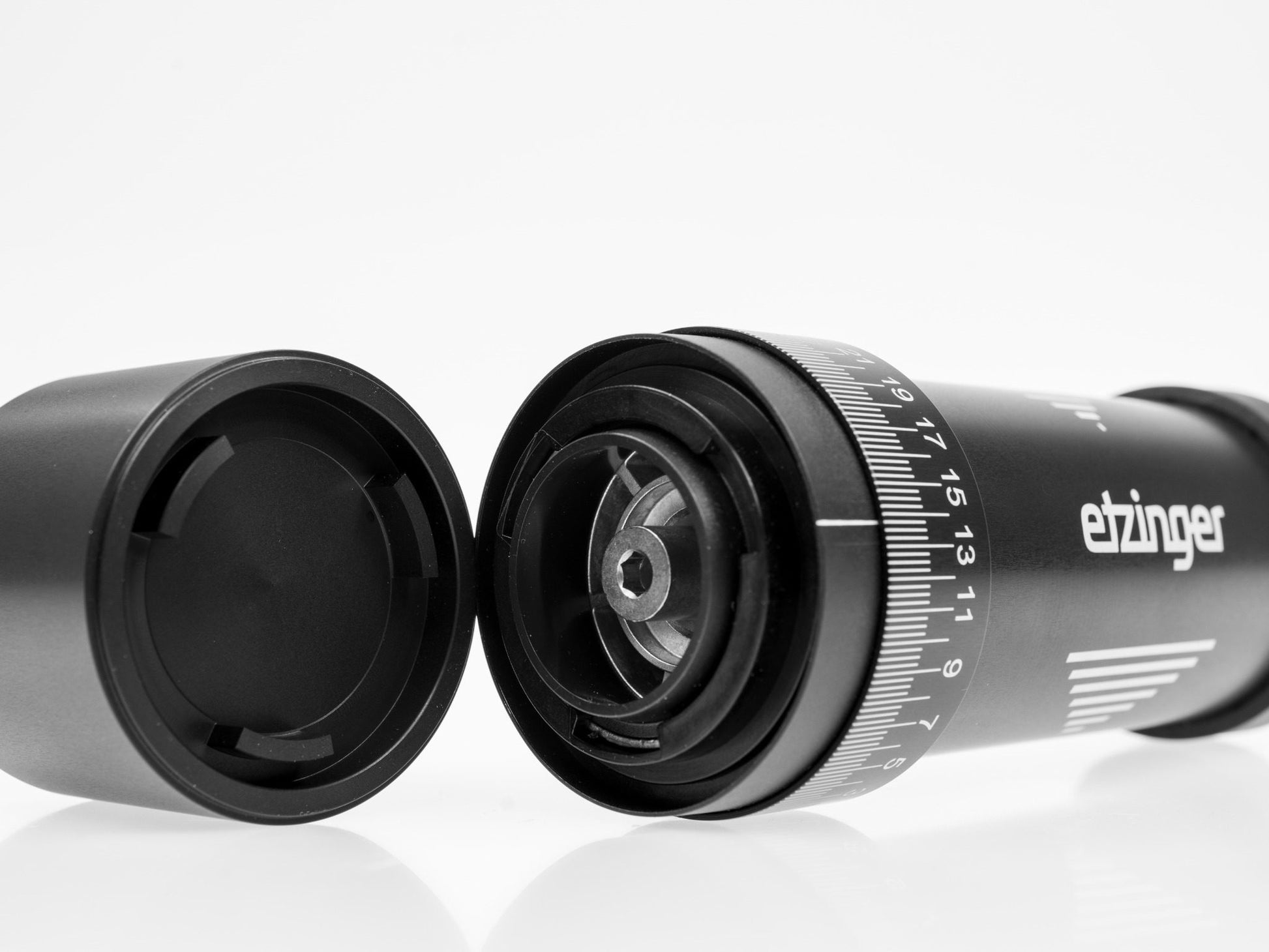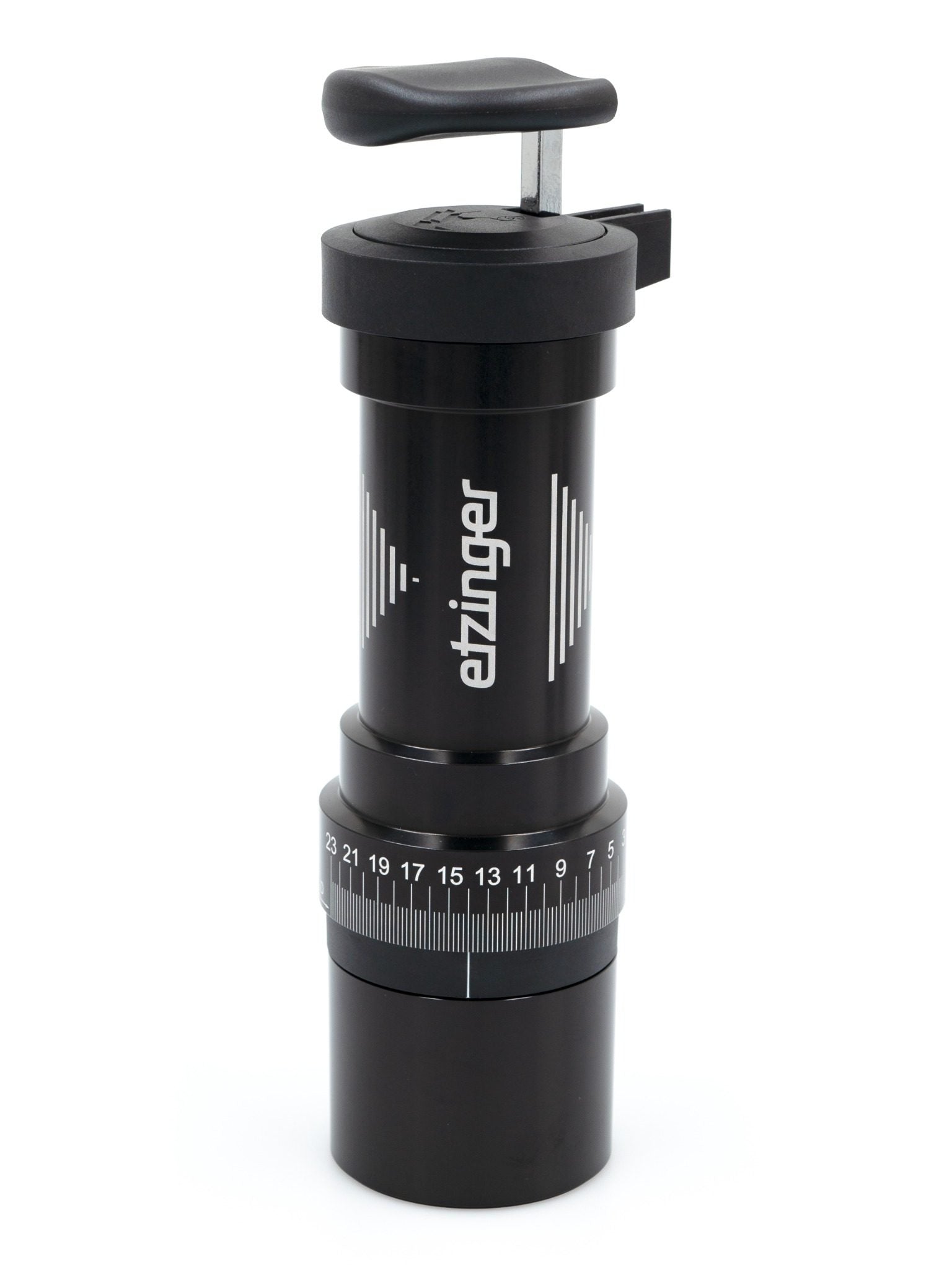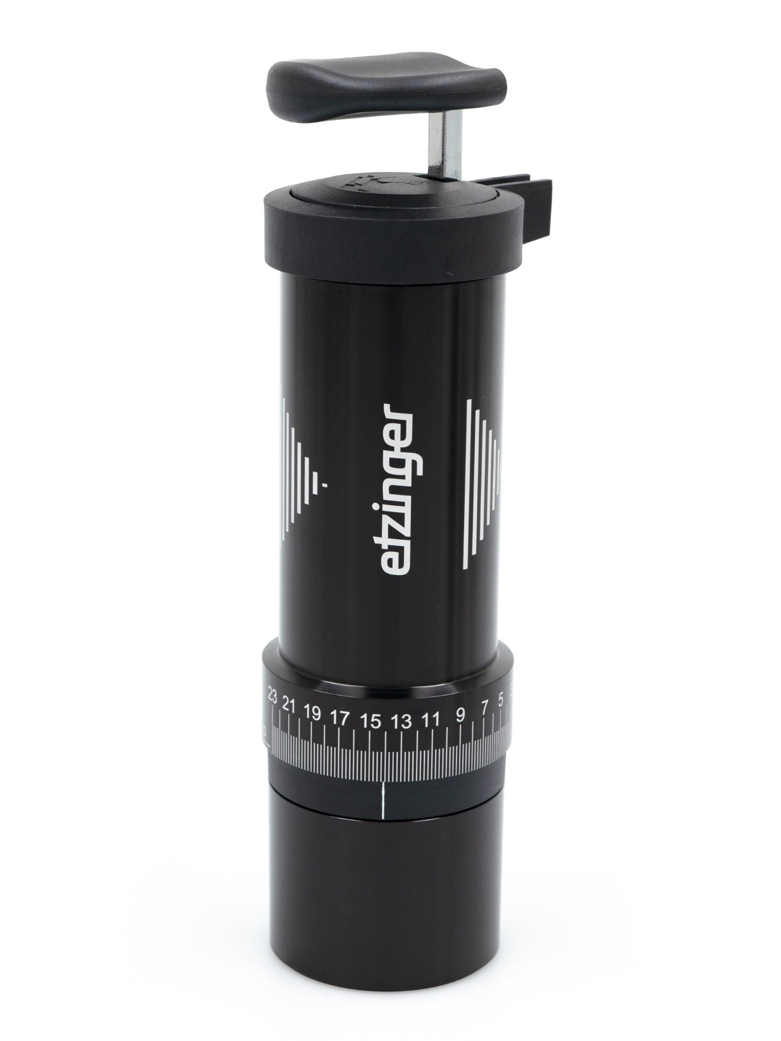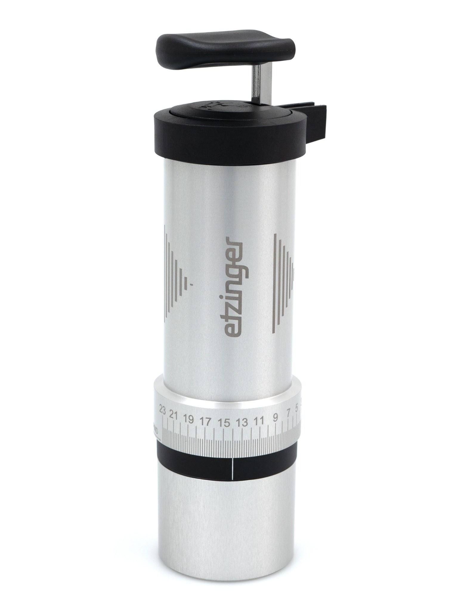 Jeder Kaffeeliebhaber kennt das Problem: statisch aufgeladenes Kaffeemehl und schwergängige Handmühlen. Die etz-I löst beide Probleme genial. Der Außenring rotiert um einen fixen Innenkegel (RRB - Rotating Ring Burr) – deshalb mahlst du gegen den Uhrzeigersinn (CCW). Die integrierte AS-Jig (Anti-Static Jig) reduziert elektrostatische Aufladung erheblich, das Mahlgut fällt sauber in den Becher. Die außenliegende Absolute Vernier Scale mit rastenden Klicks ermöglicht präzise Einstellungen über ≈ 88 Steps à ~0,02 mm. Retractable Crank, magnetische Komponenten (wenige Schrauben) und werkzeugfreie Demontage via Service-Position machen Reinigung zum Kinderspiel. Made in Liechtenstein & Schweiz.